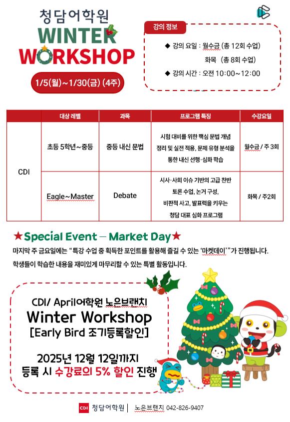 청담어학원 12월 1일(월) 겨울학기 개강