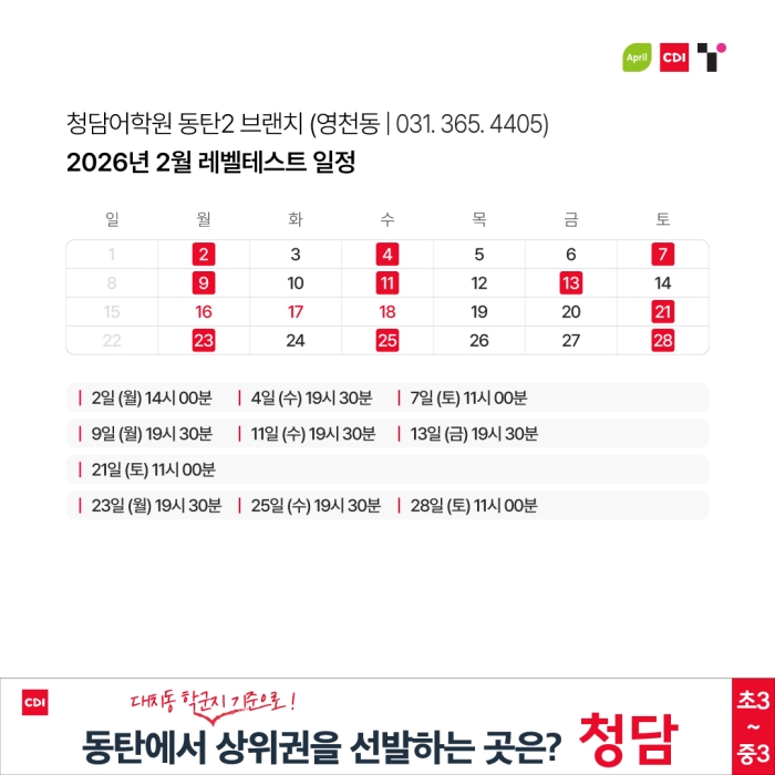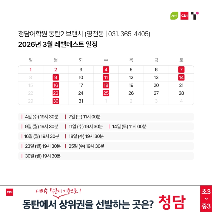 청담어학원 3월 2일(월) 봄학기 개강